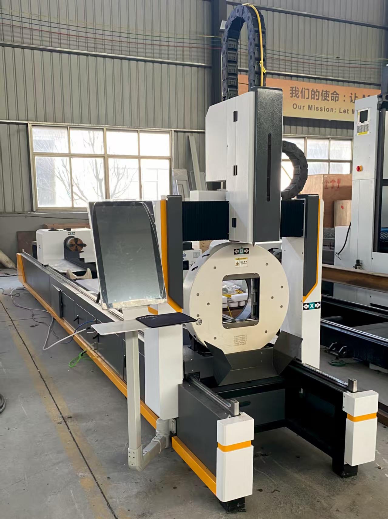 This CNC fiber laser pipe cutter integrates laser cutting, precision machinery and numerical control technology, and is a professional metal pipe and profile processing equipment. It is mainly used for cutting round tubes, square tubes, rectangular tubes, angle steel, channel steel, H-beam and other workpieces made of ordinary carbon steel, stainless steel and other materials. Widely applied in HVAC, hardware manufacturing, metal structure processing and other industries, it features high cutting precision, high processing efficiency and low material waste, and the automatic loading part is optional to meet different production needs.